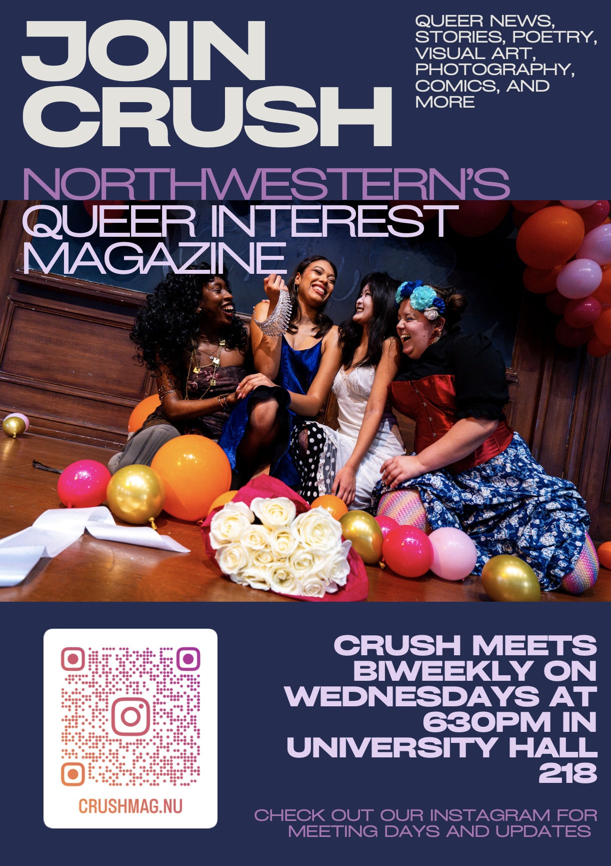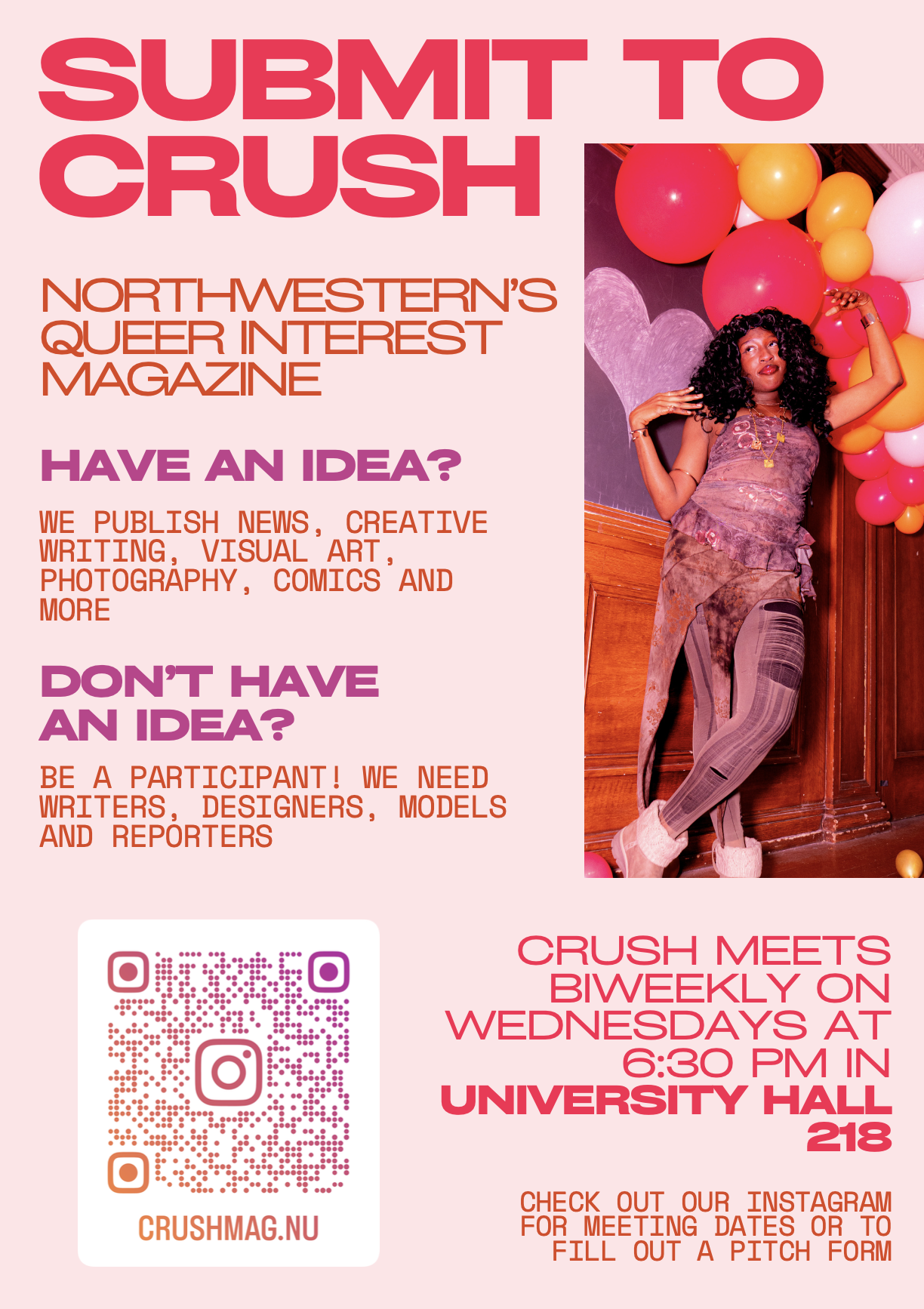 Flyers and pages created for Crush, a student-run publication at Northwestern University. Limited amount in portfolio is due to the Spring 2026 issue being under current development.
