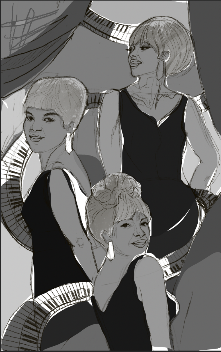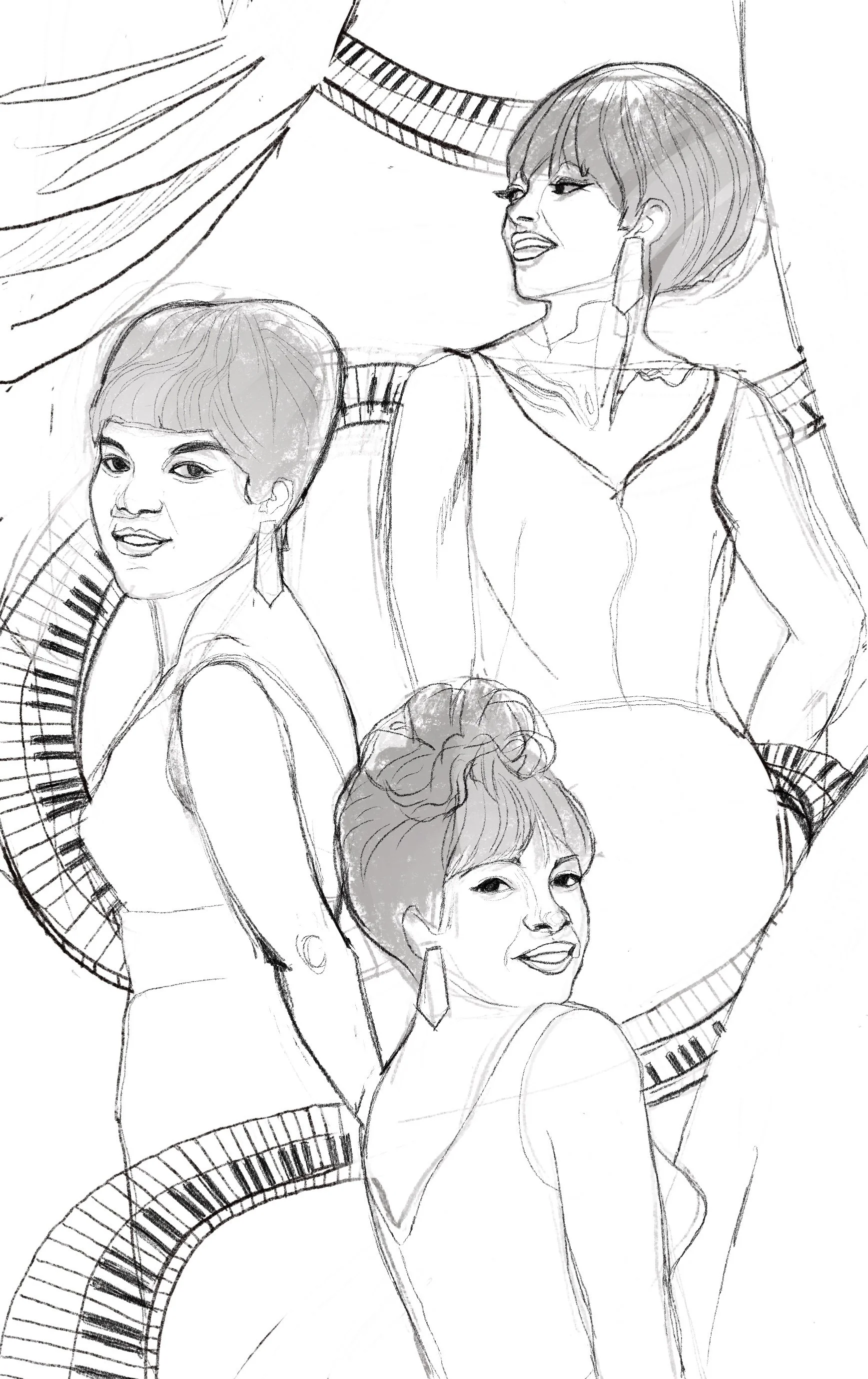 Line work, value and color studies done digitally. Final line work was printed then transferred to illustration board and rendered with acrylic paint, soft pastel, and colored pencil. The piece was then scanned in and final edits were made with Procreate.
