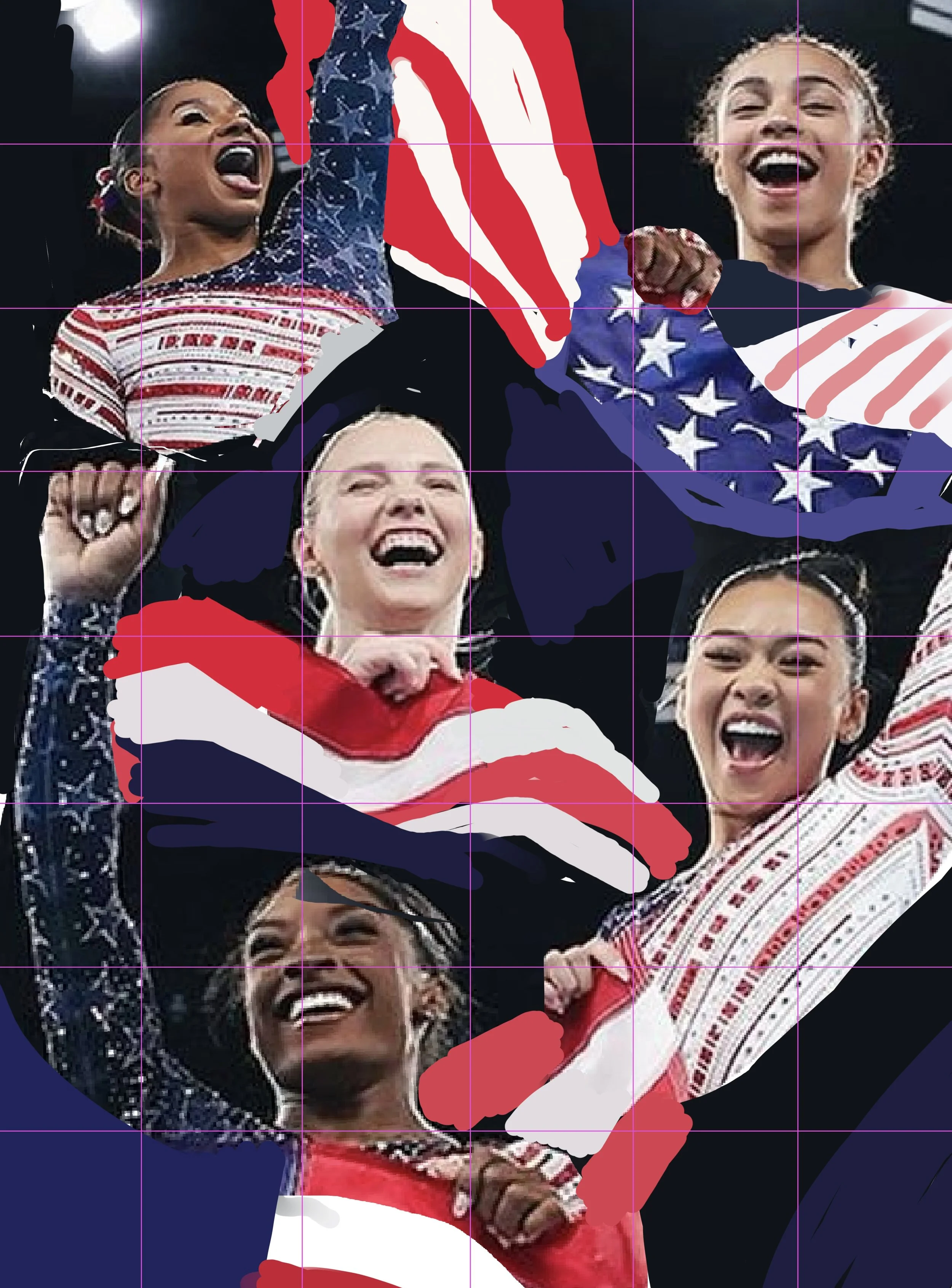 Created after they won Gold for ‘Women’s Artistic Team All-Around"‘ at the 2024 Olympics. Digital, July 2024.